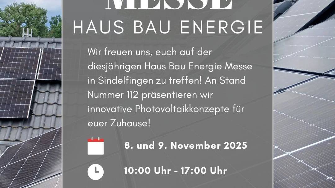 Am 10. und 11. Mai 2025 sind wir mit unserem Stand vor Ort und präsentieren innovative Photovoltaikkonzepte, für Ihr Zuhause.